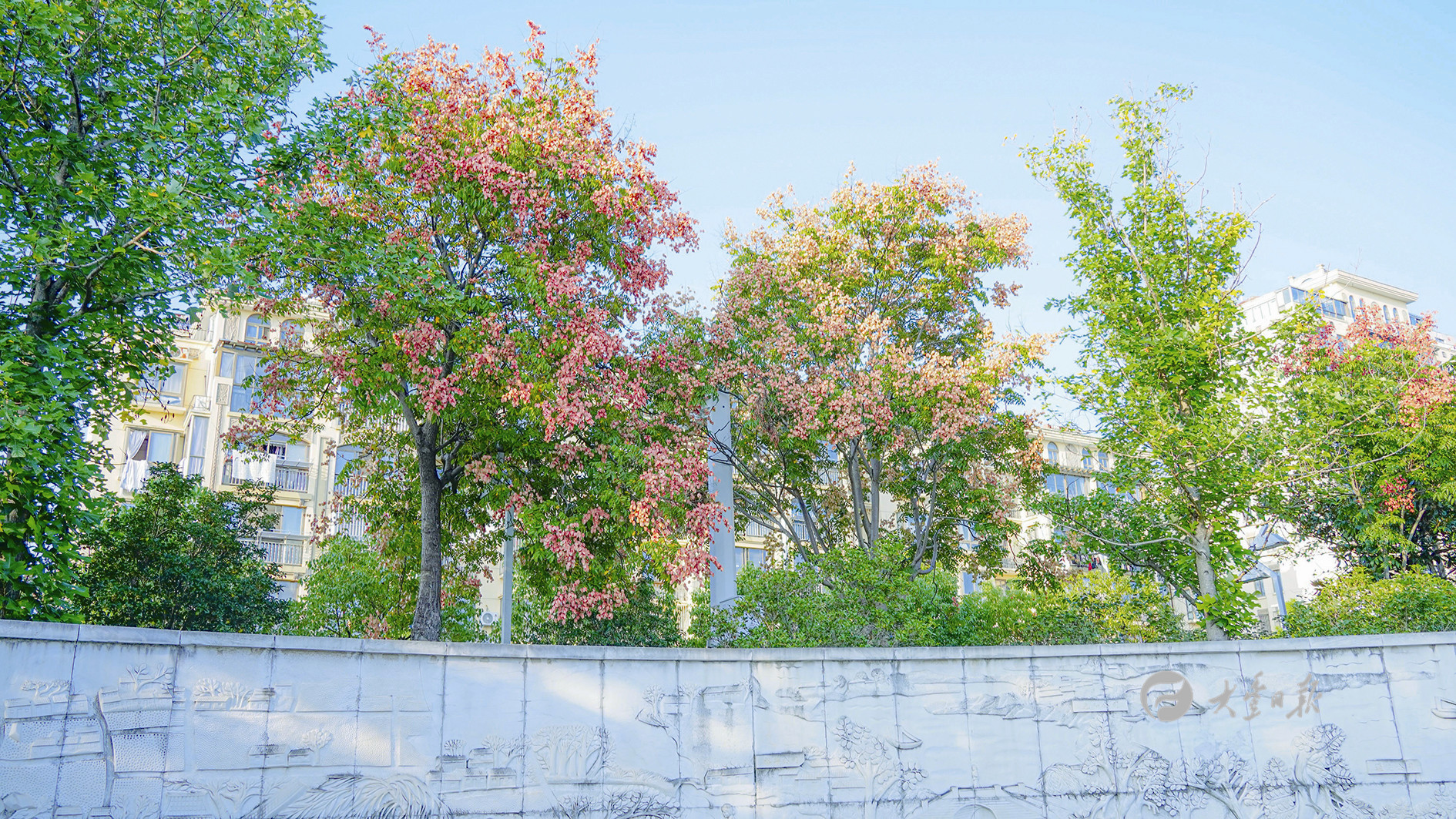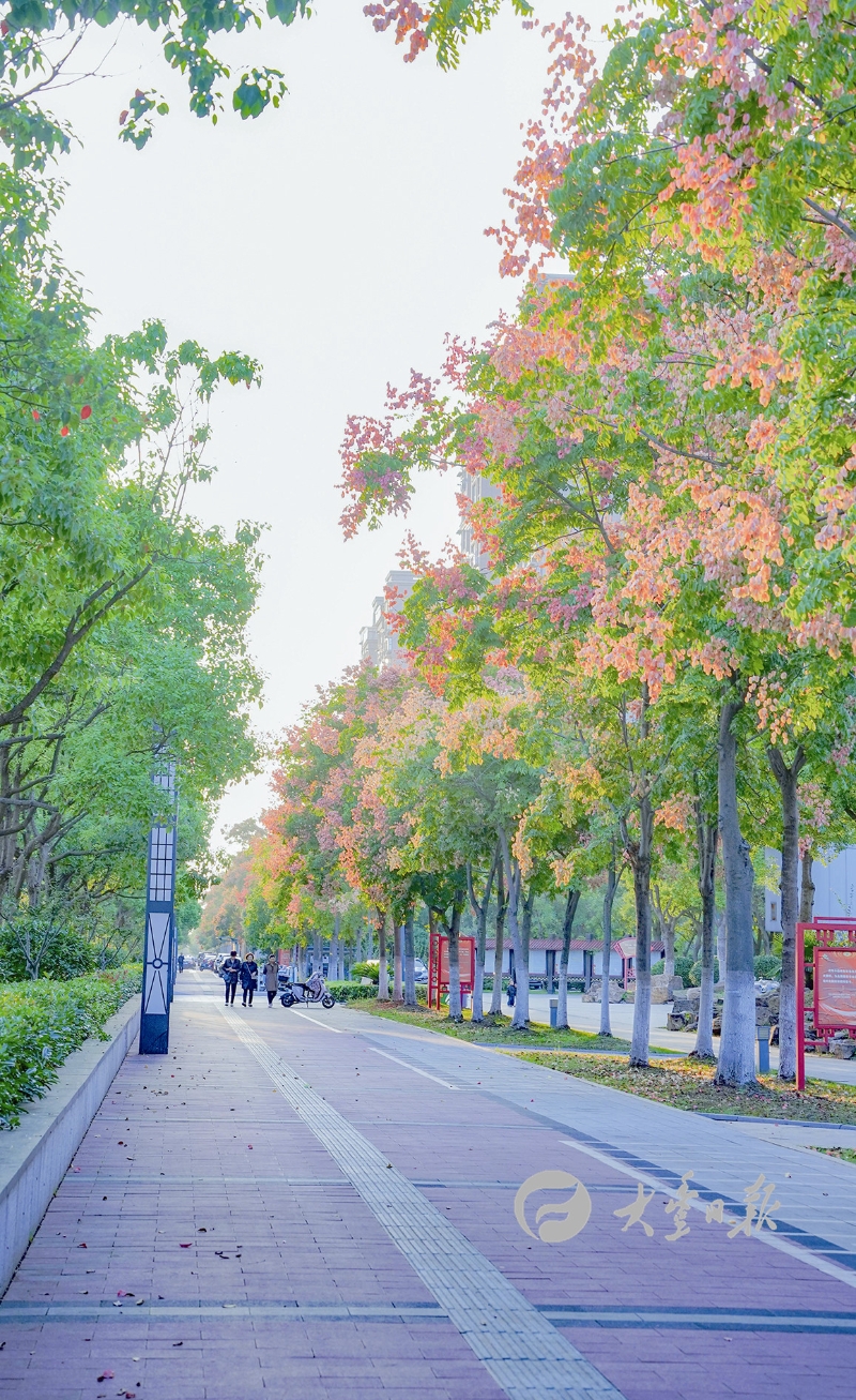 近日,大丰城区栾树枝头已陆续挂果变红,鲜亮的颜色扮靓了城市景观,让市民们感受着初秋独有的温柔与浪漫。