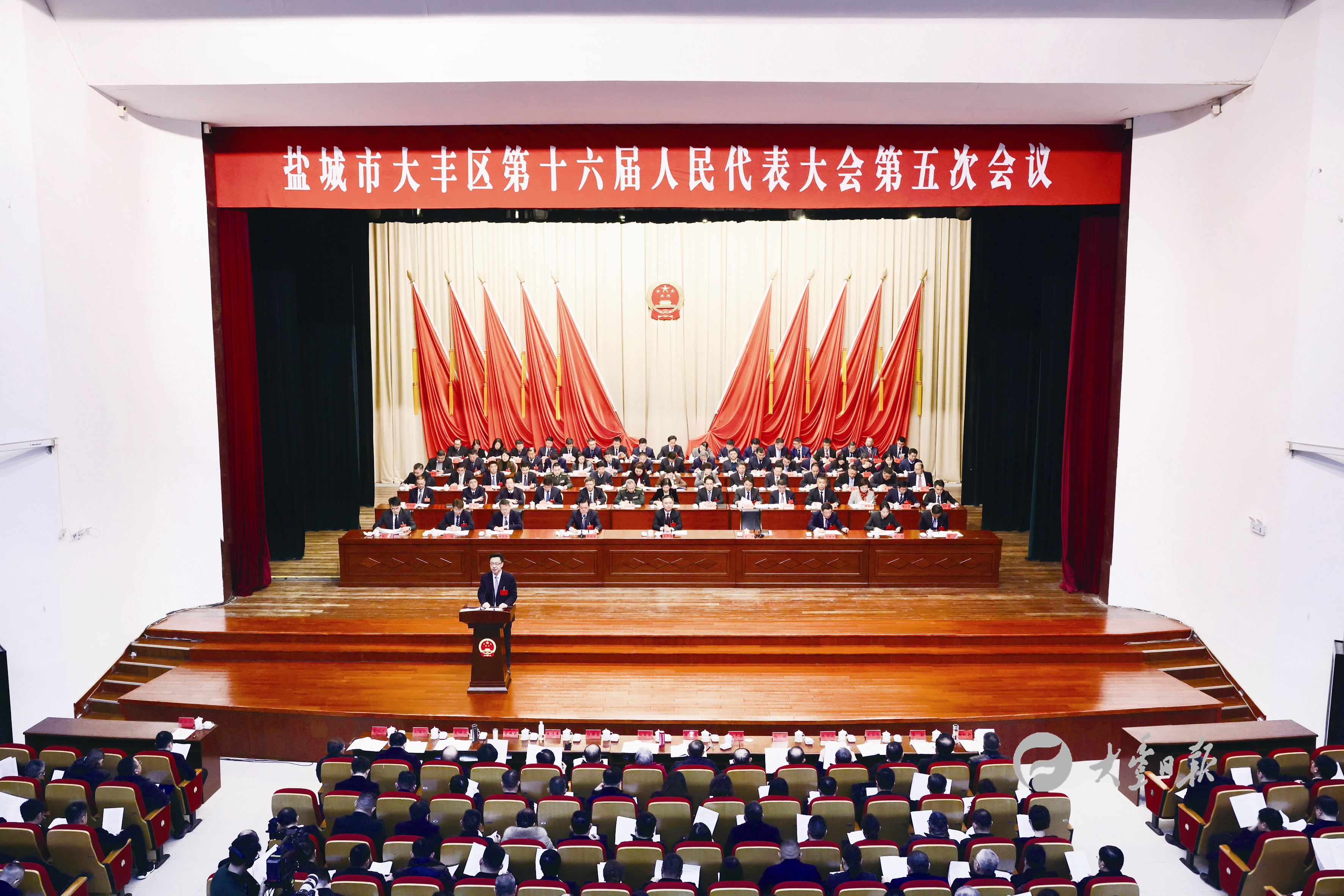 1月14日,盐城市大丰区第十六届人民代表大会第五次会议开幕。来自各条战线上的人大代表们肩负着全区人民的重托和期望,满怀豪情齐聚一堂,认真履行宪法法律赋予的神圣职责,共商大丰发展新篇,共绘大丰奋进蓝图。