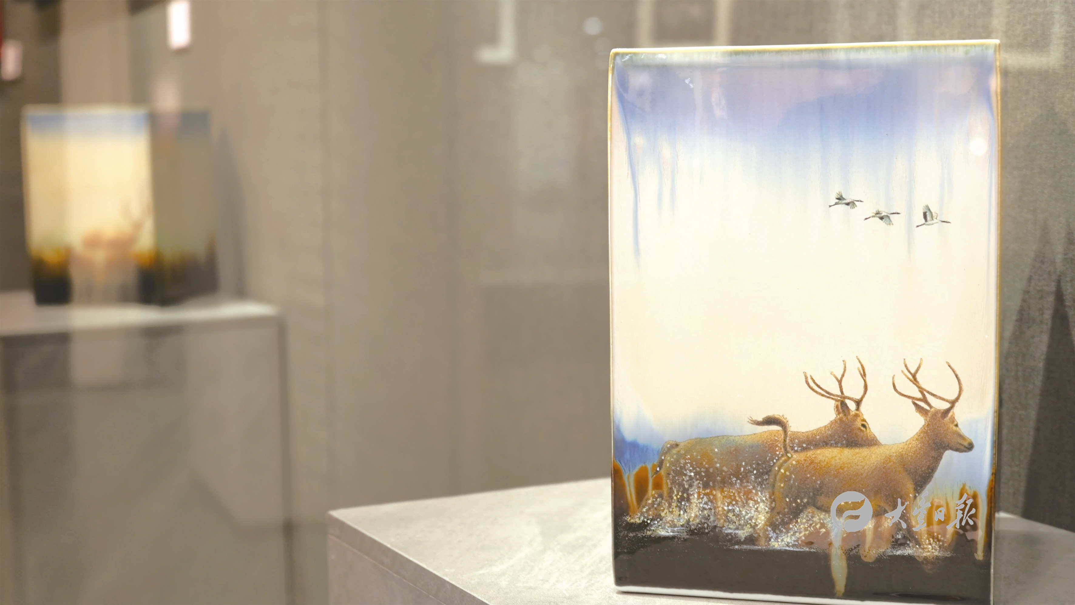 麋鹿成群、候鸟翻飞的大丰湿地风光如画,生于此地、长于此地的故土情怀,让陈银付始终以湿地为创作源泉,坚持用“非遗”讲述“世遗”故事。此次特展,是匠人匠心与自然生态的完美融合,更是本土文化自信的生动表达。陈银付团队以匠心为引,将大丰广袤湿地的绚丽风光浓缩到一件件瓷刻作品中,用艺术传递对家乡的深情。