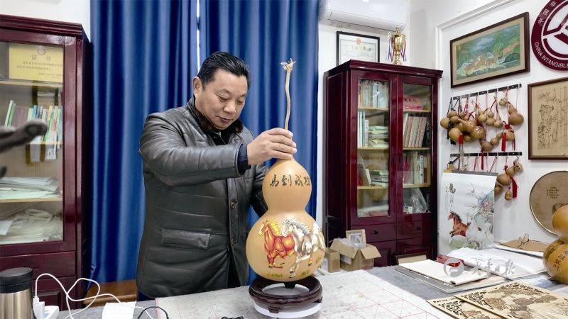 新春将至,年味渐浓,草堰烙画非遗代表性传承人景保俊以烙铁为笔,以葫芦或木板作纸,创新马年主题作品,以非遗古韵点缀新春图景。