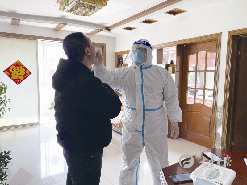 日前,万盈卫生院医务人员上门为居家隔离人员进行核酸检测。