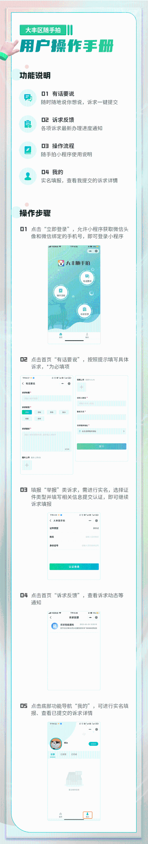 群众可通过微信小程序、“大丰政务服务”公众号、“我的盐城”APP多个入口,以图文、语音、短视频等多样方式表达诉求、提出建议,也可以表扬好人好事,传递社会正能量。