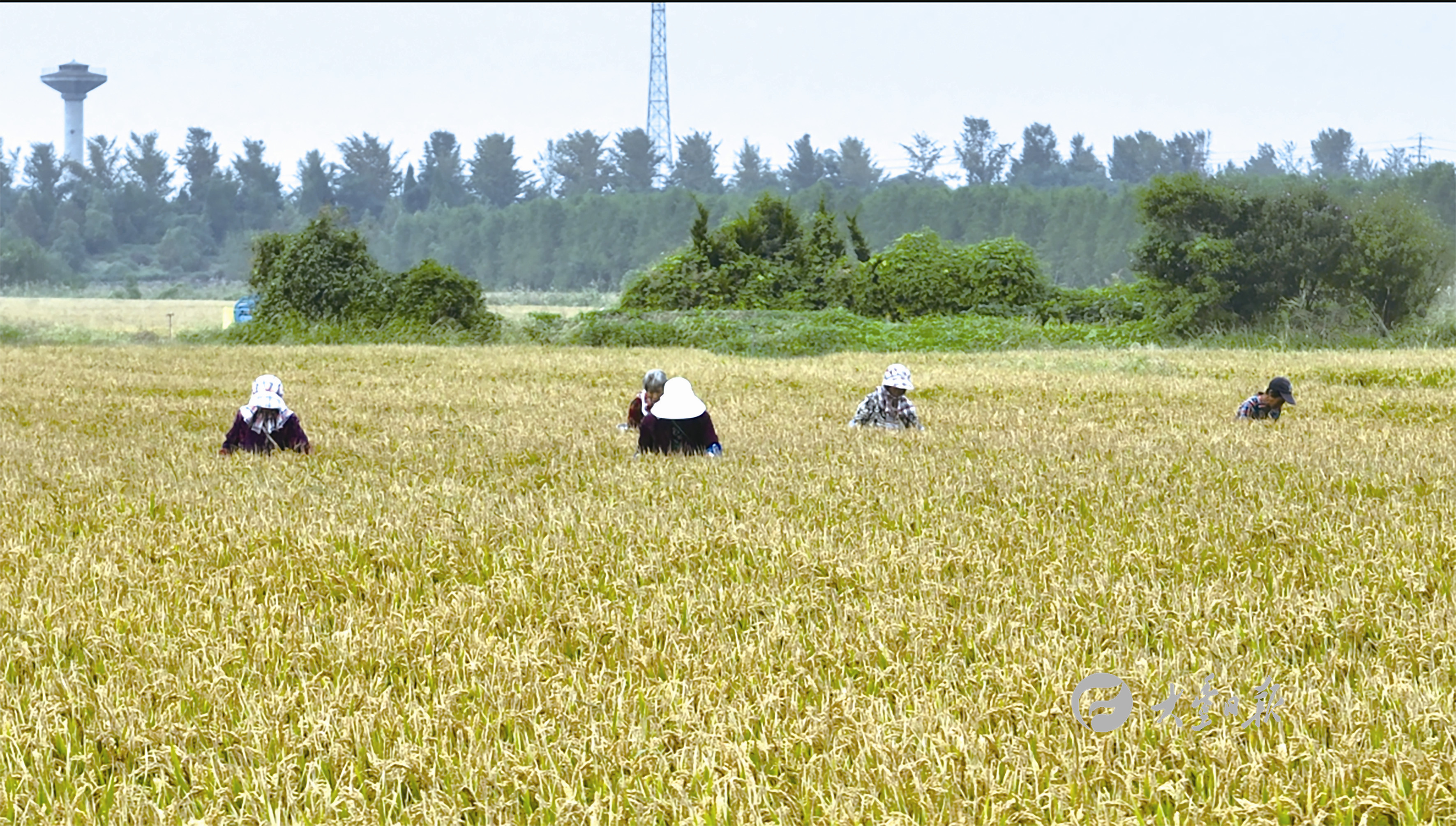 10月18日,金色农业四卯酉种植基地盐碱地改良项目现场,农民们在稻田内进行除杂工作。经过几个月的播种、灌溉、维护,这片曾经寸草不生的盐碱地即将迎来丰收。通过排盐压碱,逐年降低土壤盐分,现在可以达到中等肥力水平,亩均产量逐步达到550公斤水平。
