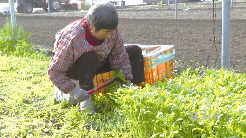 在白驹镇锦绣大地现代农业示范园权麒家庭农场,记者看到大棚内的茼蒿鲜嫩翠绿,员工们正忙着采收已经成熟的茼蒿。另一侧,工人们也在加紧搭建钢架,为后期加盖多层棚覆膜做好充足准备。农场主单首甲告诉记者,由于天气逐渐寒冷,农场正在进行二道棚的搭建,尤其在温度降到零下2℃之前,就要完成第二道薄膜的覆盖,确保蔬菜不受寒流的冻害。