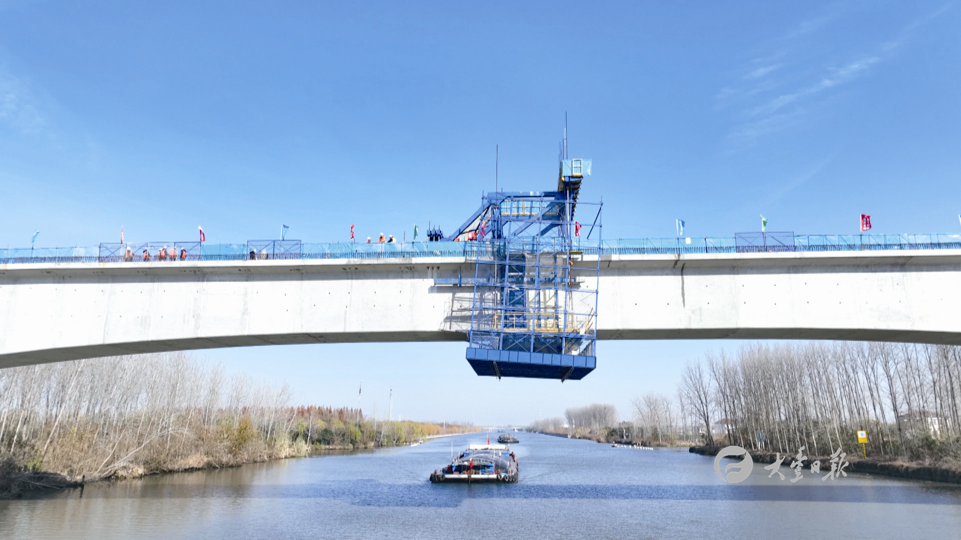 大丰港铁路支线工程特殊孔跨桥梁主体工程施工全部完成