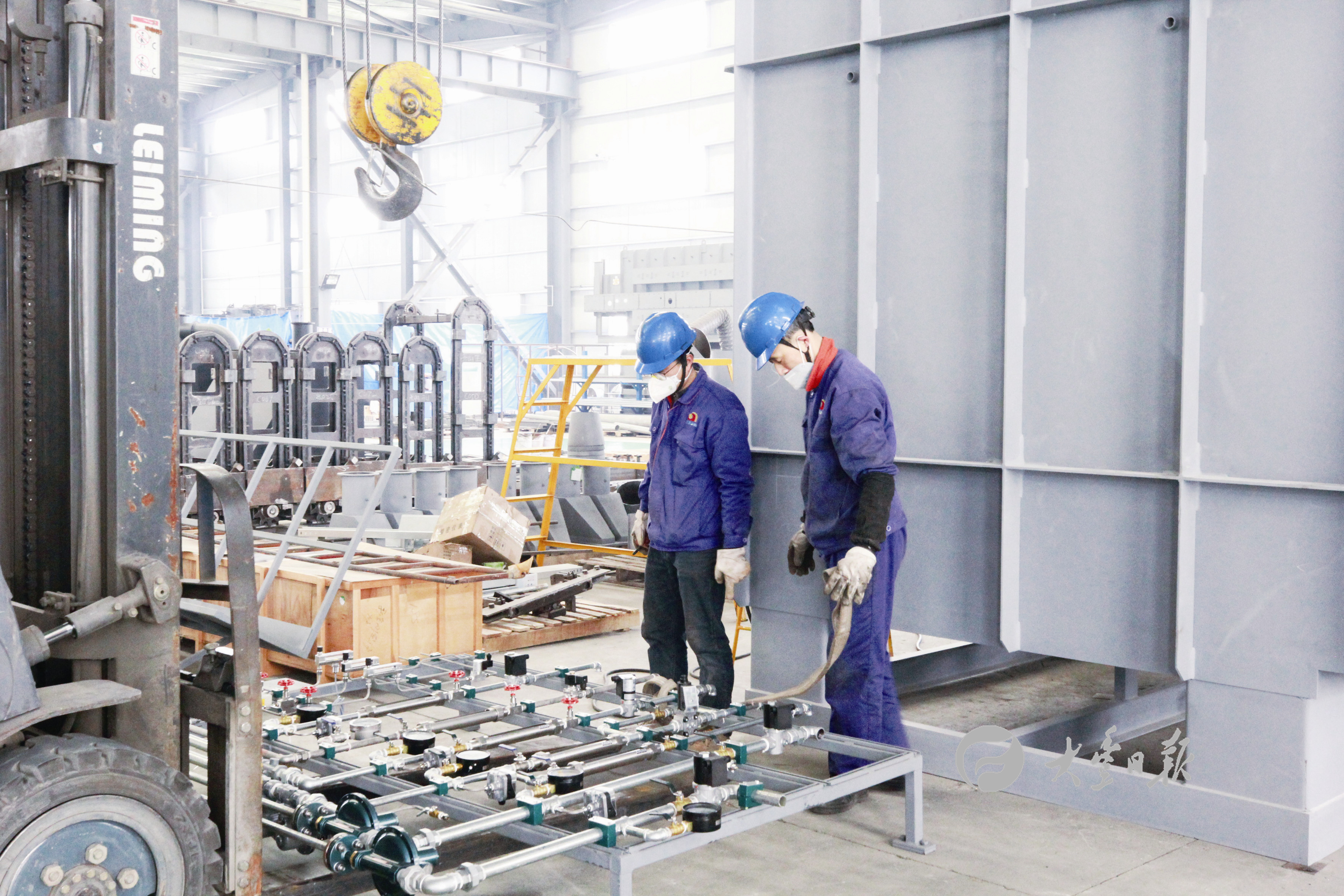 日前,在江苏金色工业炉制造有限公司生产车间内,员工正在调试新一代工业炉,组织装车,发往大连,一片繁忙景象。该公司经营发展中利用专业型技术,研发高、精、新产品,努力在飞速发展的市场中占有一席之地。