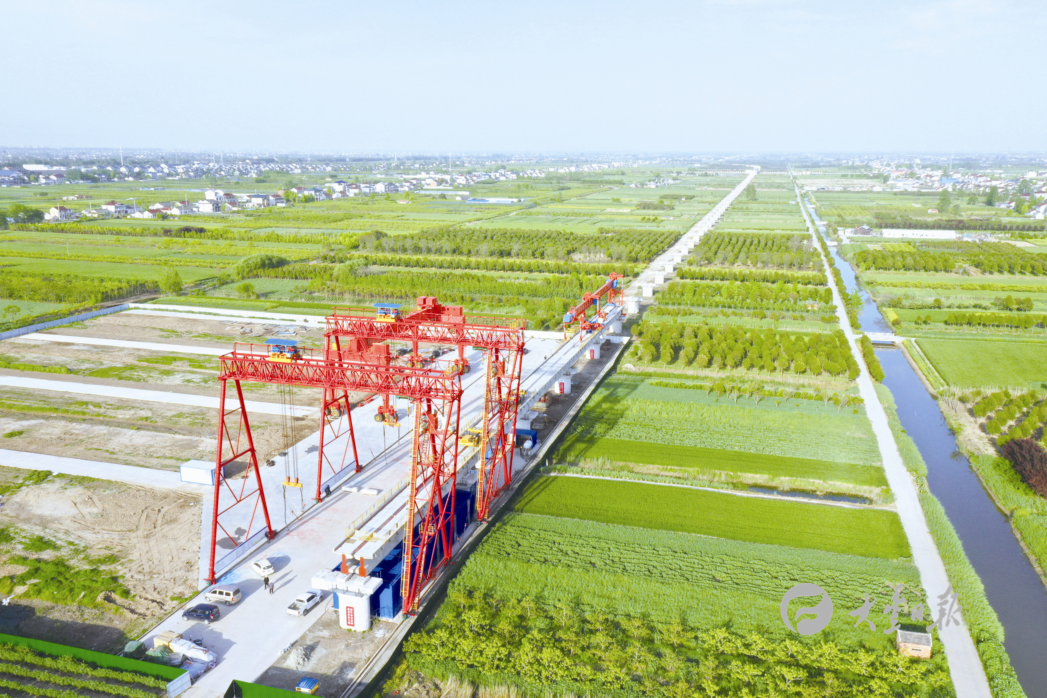 据悉,大丰港铁路支线自新长铁路大丰西站南端引出,终点设大丰港站,正线全长50.69公里,其中桥梁工程占比85%。全线共1230孔桥梁架设任务,分两端进行架梁,目前已经完成155孔,计划年内完成T梁架设任务。