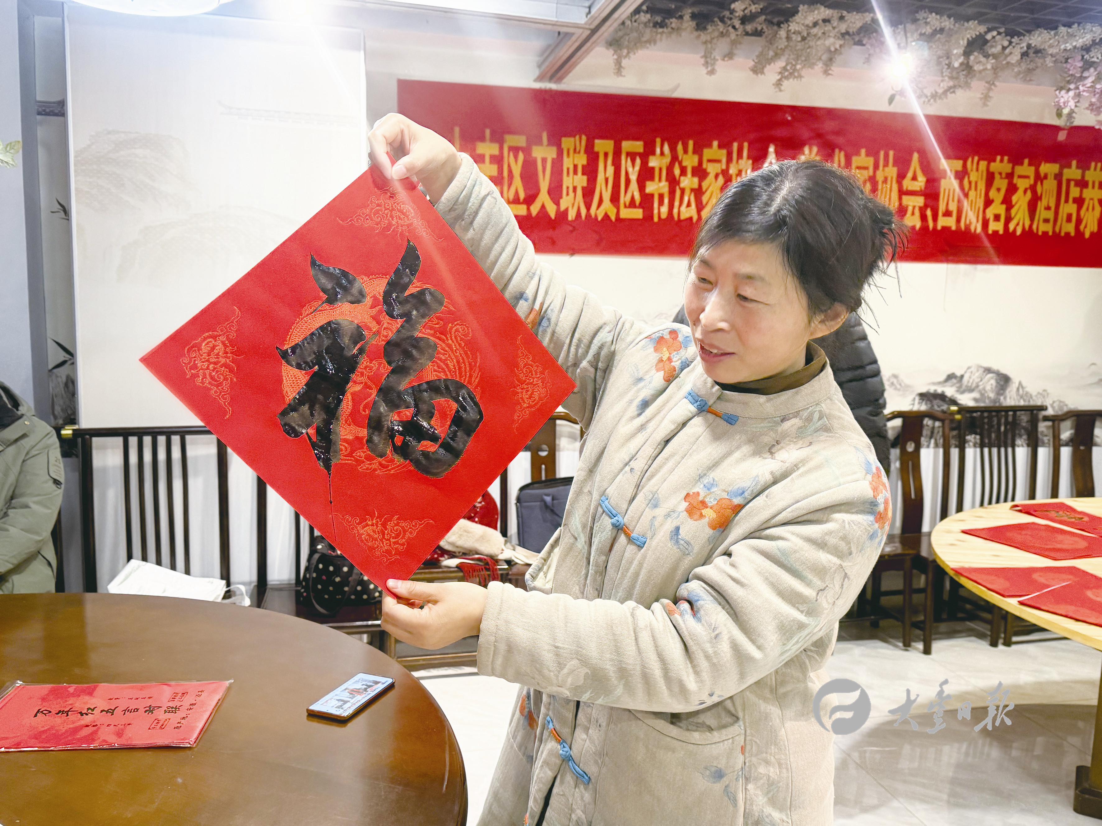 活动现场,空气中弥漫着淡淡的墨香,来自区书法协会与美术家协会的艺术家们齐聚一堂,他们神情专注,挥毫泼墨间,笔走龙蛇,气韵生动。一副副寓意吉祥的春联和一个个饱满圆润的“福”字跃然纸上,不仅展现了艺术家们的精湛技艺,更寄托了大家辞旧迎新、接福纳祥的美好愿望。拿到春联的市民脸上洋溢着笑容,激动地表示,春联不仅字写得好看,寓意也很好,感觉年味一下子就浓起来了。