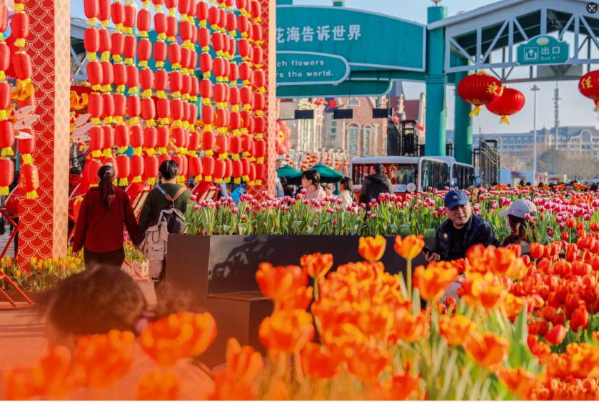 春节,向来是团圆、喜庆的代名词,而这片冬季郁金香花展,无疑为佳节注入了别样风情。穿梭花丛,孩子们惊叹于花朵的美丽,大人们沉醉在这冬日里的温暖色彩,相机快门声不断,定格下阖家欢乐的温馨瞬间。情侣们手牵手漫步其中,粉色郁金香见证着甜蜜爱恋,在寒冬相依赏这般美景,爱意愈发炽热。老人们也在花畔悠然踱步,感慨岁月静好,这花海承载着几代人的欢乐,为传统春节带来新潮且难忘的体验。