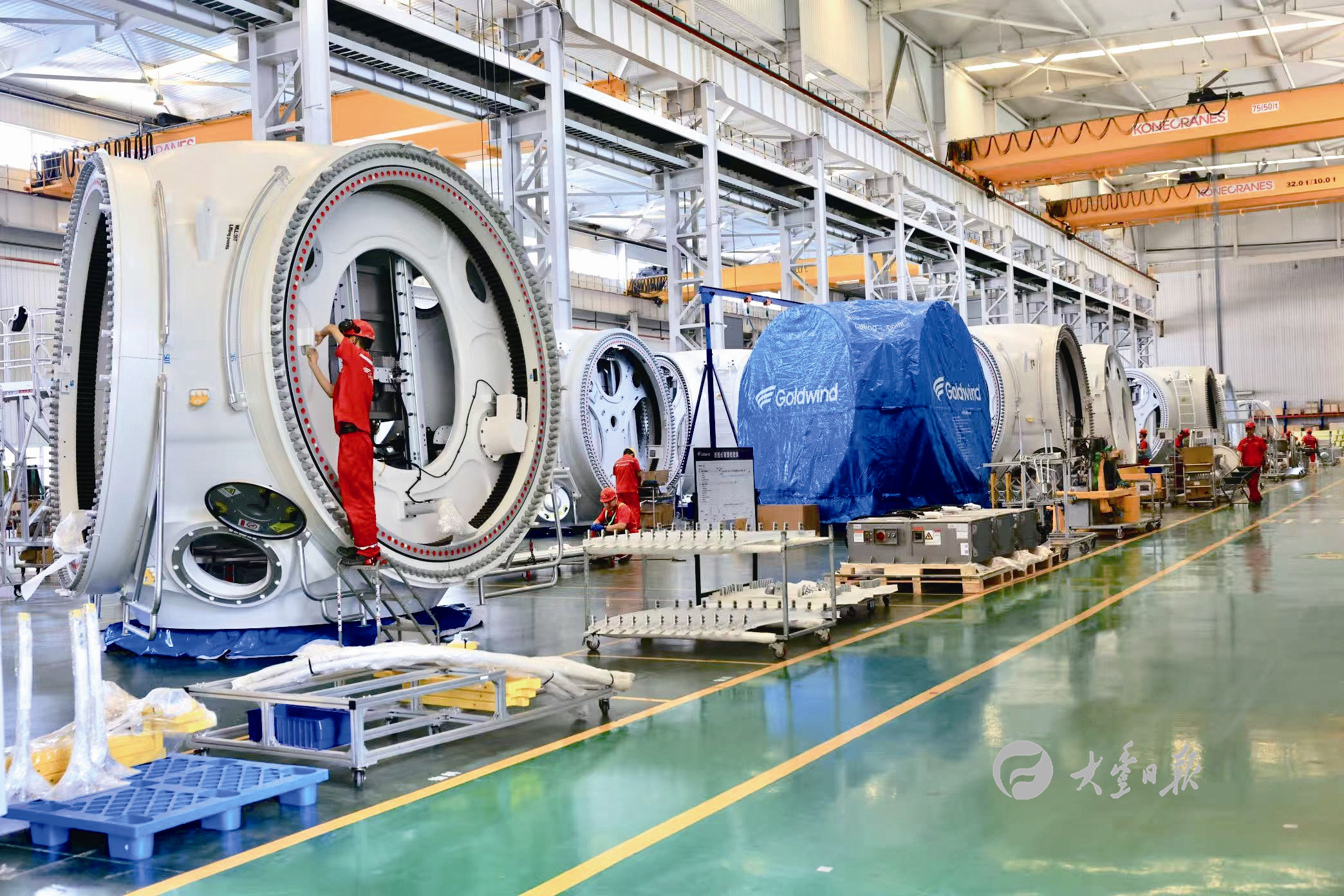 近日,江苏金风科技有限公司内,技术人员正在安装调试大型风力发电机。该公司自主研发的智能风机成功应用于多个海上风电项目,助力我国清洁能源转型。公司持续推动技术创新,提升发电效率,为“双碳”目标贡献力量。
