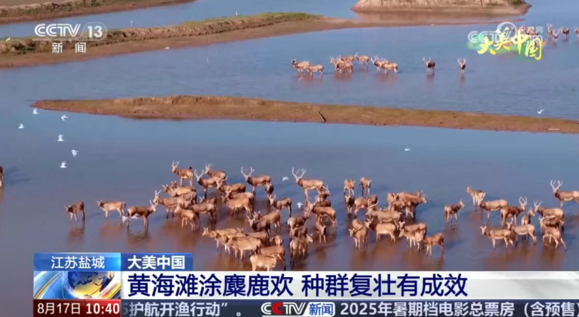 大丰又双叒叕登上央视啦!昨天(8月17日),央视新闻直播间点赞大丰,黄海滩涂麋鹿欢,种群复壮有成效,快跟小编一起来看。
