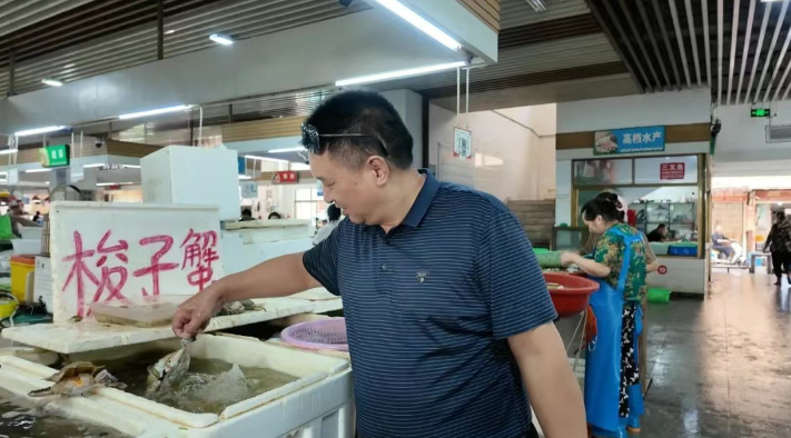 在城中市场的水产品区,不少商户的摊位前摆满了罗氏虾、推浪鱼、梭子蟹等新鲜捕捞的海产品,其中最吸引顾客目光的,就是一个个鲜活肥美的梭子蟹。这个时节的梭子蟹,肉质紧实,蟹黄饱满,味道鲜美,上市以来迅速成为了市场上的热门商品,前来购买的顾客络绎不绝。