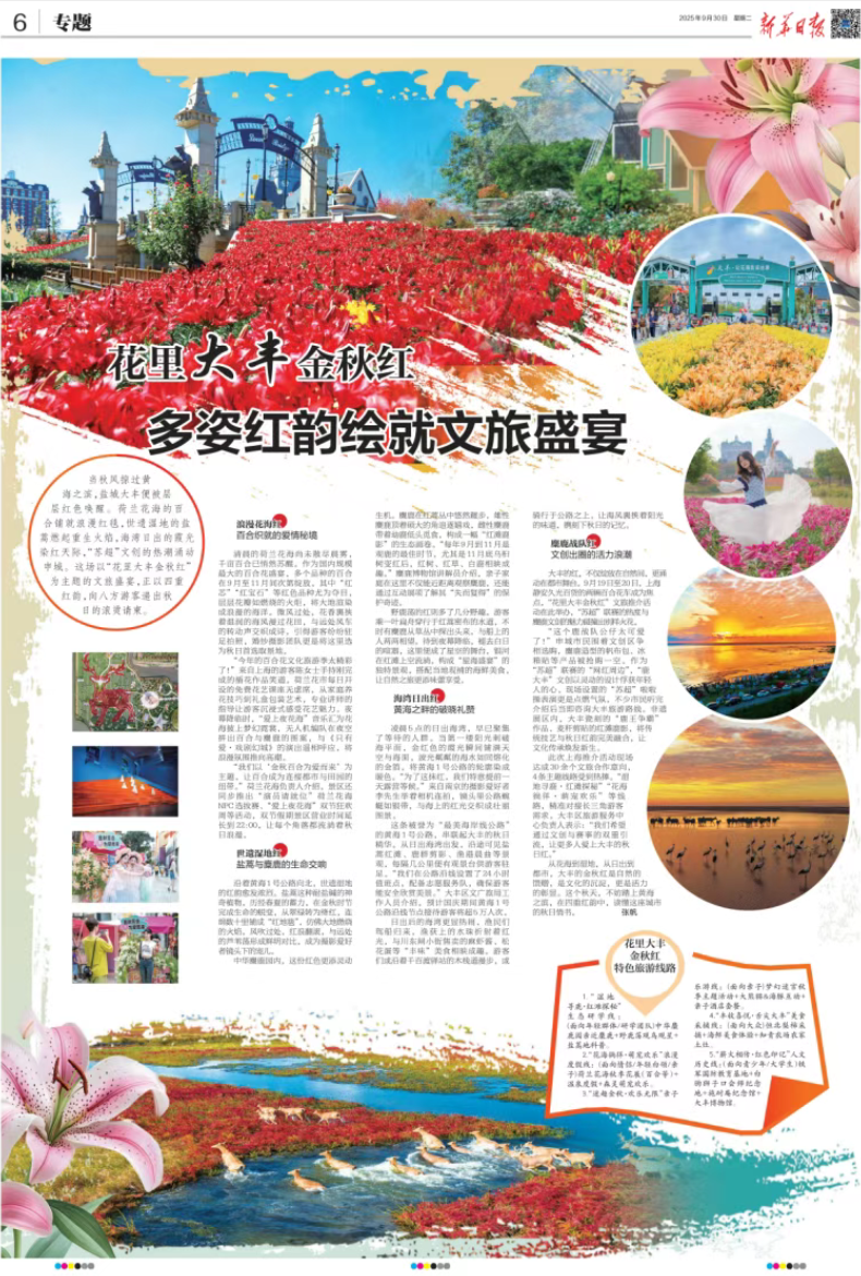 9月30日出版的《新华日报》刊登报道《花里大丰金秋红多姿红韵绘就文旅盛宴》,一起关注!